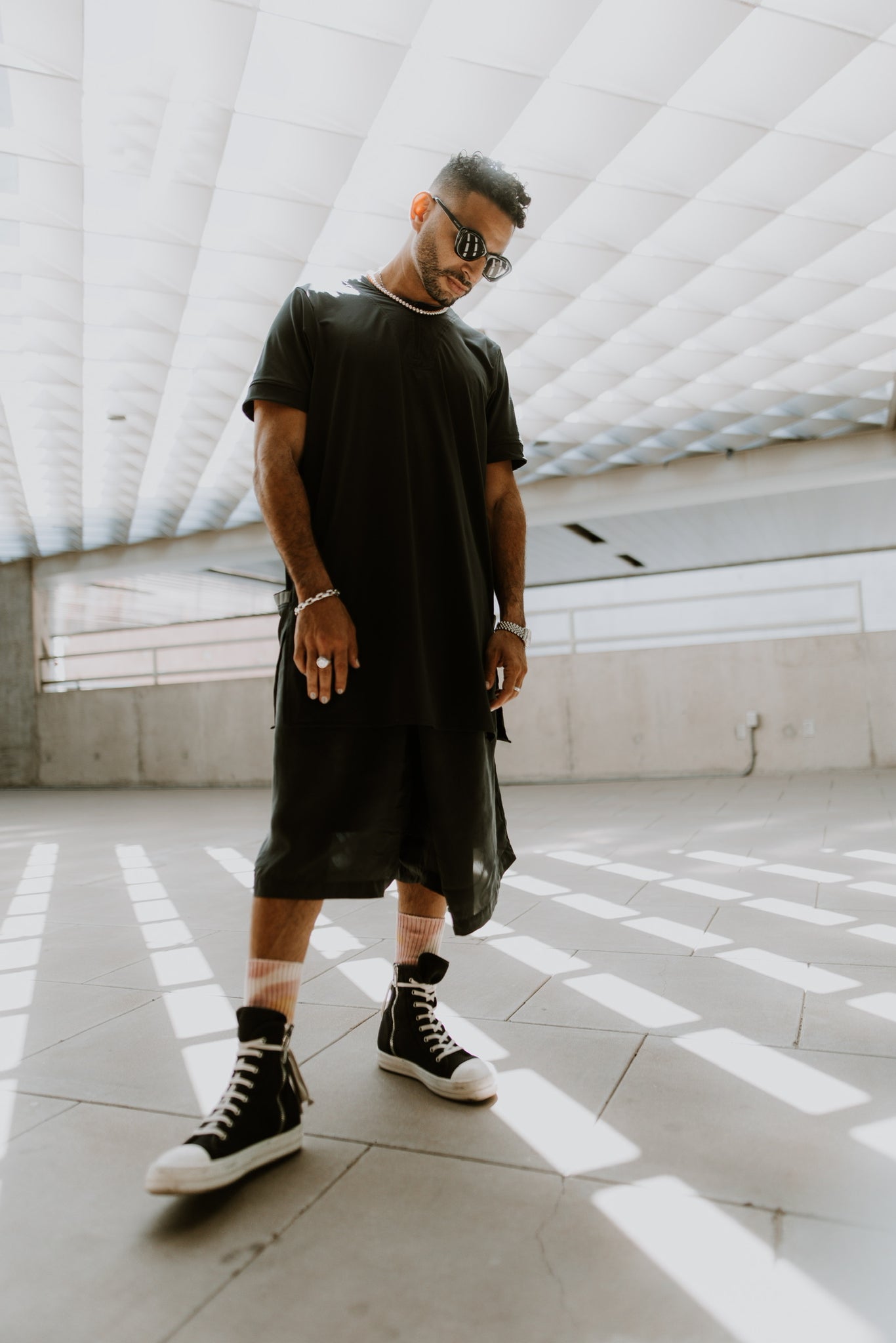 The stars aligned in the creation of The Sil garment, constructed from the same fabric used for burkas, something to conceal a woman’s beauty may now be a form of expression and freedom for all genders. Intended to be worn in any situation and by anyone, the Sil transcends borders, gender, age, and religion, as a bold stand for freedom and inclusivity.